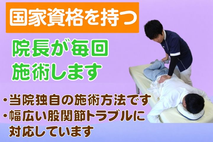 関節の専門家である国家資格 柔道整復師の院長が丁寧に診させて頂きます。